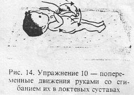 занятий по плаванию. При наличии неблагоприятных признаков, в частности отставания веса от средних данных, необходимо ограничивать нагрузку в дальнейших занятиях: уменьшать их продолжительность, сокращать количество повторений отдельных упражнении, не снижать температуру воды и т.д. Если и после таких ограничений отрицательные явления не исчезнут, следует сократить количество занятий в ванне до 2-3 раз в неделю. И только после полного исчезновения отрицательных явлений можно вновь продолжить постепенное повышение физических нагрузок и дальнейшее снижение температуры коды.