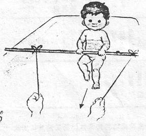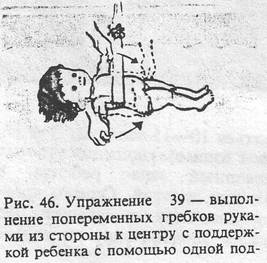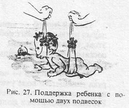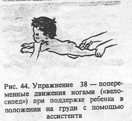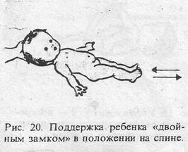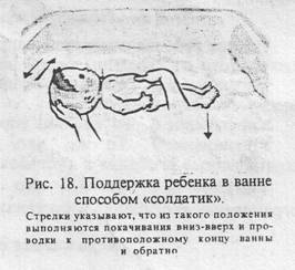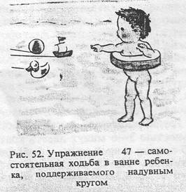 другими игрушками. Начиная с четвертого месяца жизни, малыша во время этих интервалов проводятся специальные упражнения в положении стоя на дне ванны (наполненной водой) и в ходьбе по ее дну.
