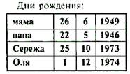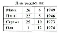 Рассмотрим алгоритм и программу вывода списка дней рождения В семье, составленные в соответствии с выбранным представлением данных:
