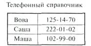 В качестве примера рассмотрим задачу поиска номеров телефонов по телефонному справочнику. Исходной информацией в этой задаче является «Телефонный справочник», который можно представить следующей таблицей: