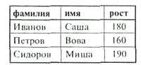 Приведем пример систематического составления алгоритмов и программ обработки данных с использованием спецификаций для решения задачи «Выбор друзей по росту». Допустим, что исходные данные этой задачи представлены следующей таблицей: