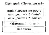 Примем, что запросы на поиск друзей по росту и результаты поиска будут выводиться на экран по следующему сценарию: