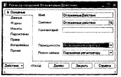 «ОтложенныеДейств 656j917g ия». Поскольку информация в 656j917g него будет попадать только при пров 656j917g едении документа «Днев 656j917g нойОтчетЗадание», то «режим записи» став 656j917g им в 656j917g положение «Подчинение регистратору», а «периодичность» - «По позиции регистратора».
