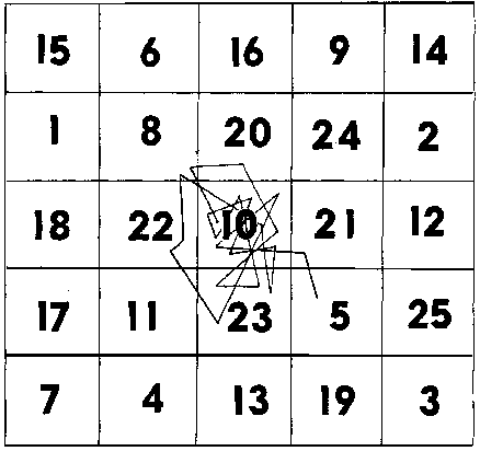 4. При поиске следующих друг за другом цифр разрешается фиксация глаз только в центре таблицы. Горизонтальные движения глаз запрещены. Расстояни 24224g615y 77; от таблицы до глаз такое же, как и при чтении обычного текста, т. е. примерно 25-30 см.