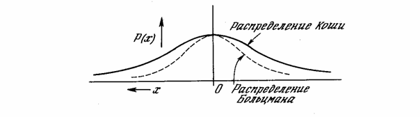В работе [6] развит метод быстрого обу 22122r175w 095;ения подобных систем. В этом методе при вычислении величины шага распределение Больцмана заменяется на распределение Коши. Распределение Коши имеет, как показано на рис. 5.3, более длинные «хвосты», увеличивая тем самым вероятность больших шагов. В действительности распределение Коши имеет бесконечную (неопределенную) дисперсию. С помощью такого простого изменения максимальная скорость уменьшения температуры становится обратно пропорциональной линейной величине, а не логарифму, как для алгоритма обу 22122r175w 095;ения Больцмана. Это резко уменьшает время обу 22122r175w 095;ения. Эта связь может быть выражена следующим образом: