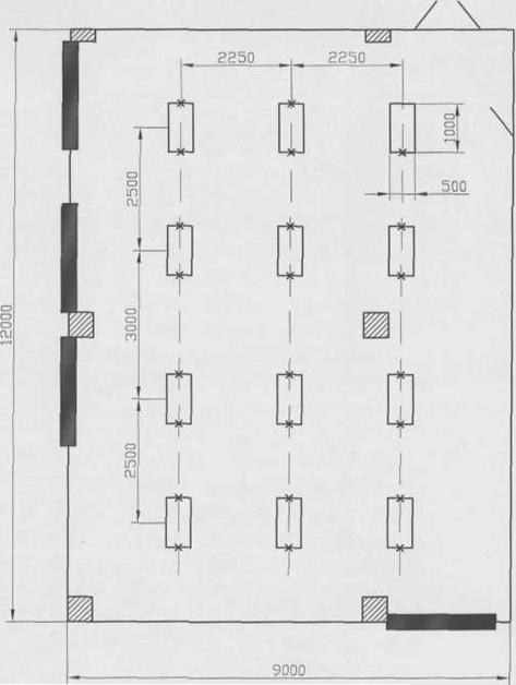 жарным преградам, эвакуации людей из здания. План помещения показан на рисунке 4.4. Пожарная безопасность обеспечивается соответствующим устройством и эксплуатацией оборудования, зданий и сооружений. При этом необходимо предусмотреть методы и средства пожаротушения.