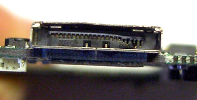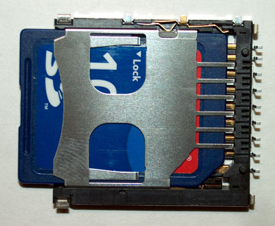 Гнездо для карт памяти также используется часто. Далеко не всегда после извлечения карты в него устанавливают заглушку, в результате в разъем могут попасть посторонние предметы, которые будут мешать вставить на место карту. Если карту удалось установить на место, но КПК ее «не видит», возможно, поврежден разъем (если удалось исключить повреждение самого носителя, проверить его работоспособность можно, вставив в другое устройство). При наличии яркого фонаря или настольной лампы можно, не открывая КПК, через щель разъема рассмотреть контакты и убедиться в наличии или отсутствии повреждений. Разъем для карт SD имеет свою специфику: в нем предусматривается внутренняя контактная группа, которая замыкается при полностью вставленной карте. В частности, уже упоминавшаяся модель HP iPAQ h2210 имеет весьма неудачную конструкцию: в контактную группу ее разъема набивается пыль.