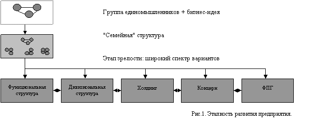 На практике переход предприятия на очередной этап развития сопровождается шлейфом нерешенных в свое время задач, что сохраняет, например, в финансово-промышленной группе черты "семейной" структуры и значительно снижает эффективность бизнеса.