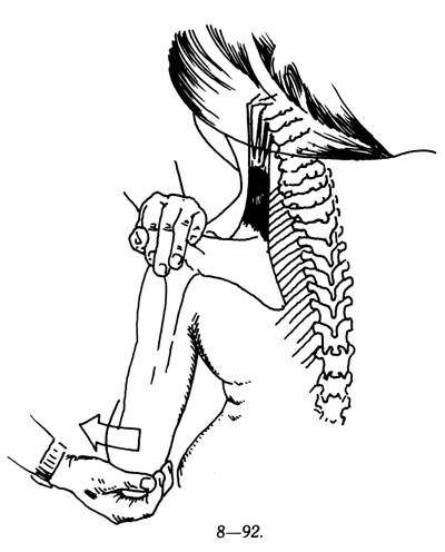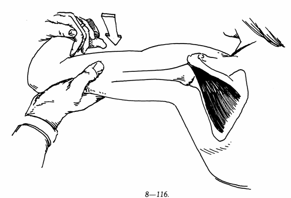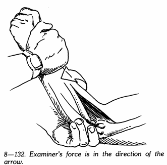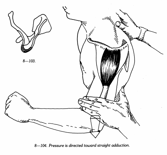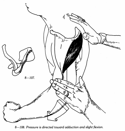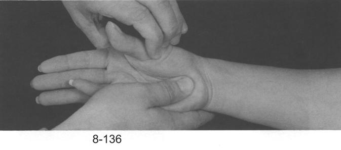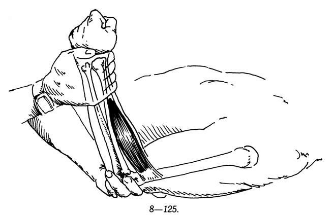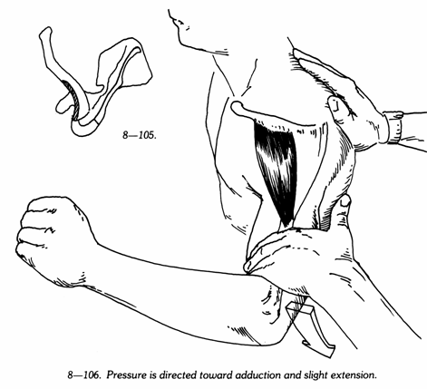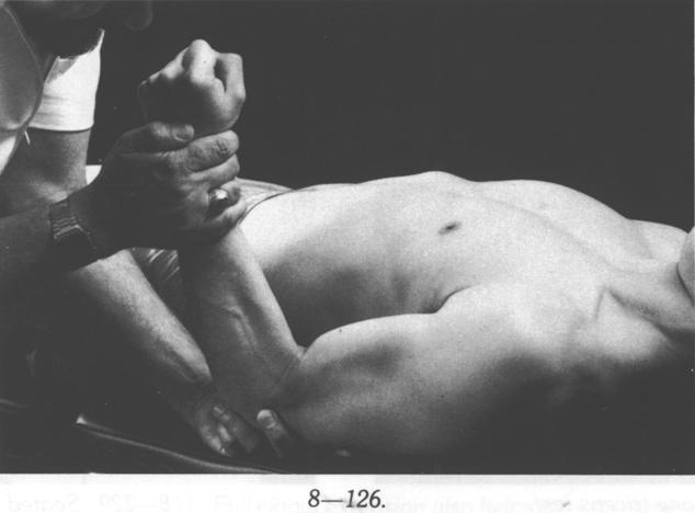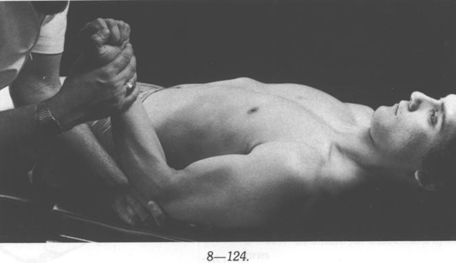 часть запястья в направлении медиального движения запястья и, следовательно, медиальная ротация плеча.