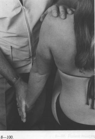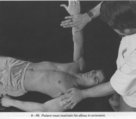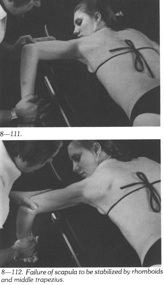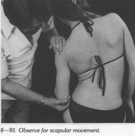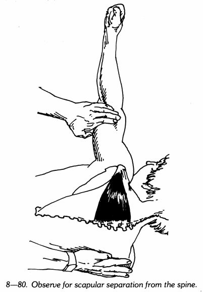 Пациенту сложно удержать тестовое положение при неподвижной лопатке. Во время теста лопатка в действительности отойдет и поднимется от грyднoй клетки.