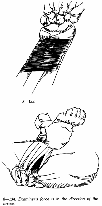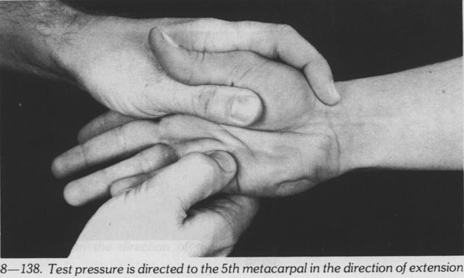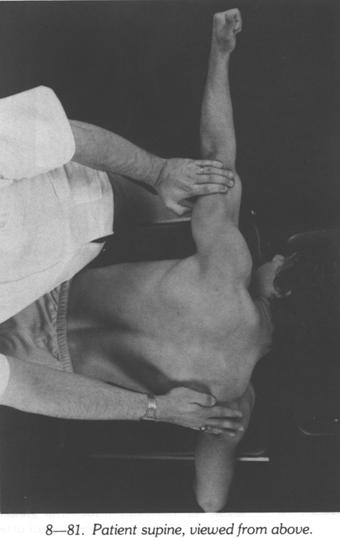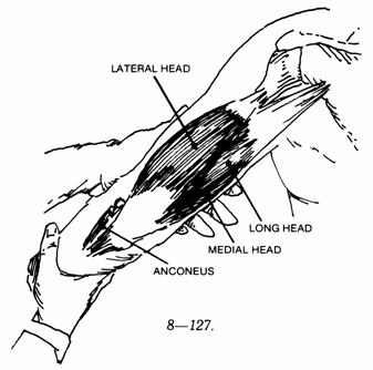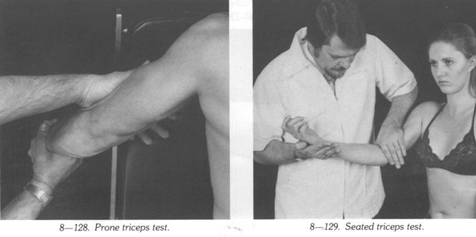 Увеличение сгибания в локтевом суставе в положении релаксации. Болезненность или затруднения выполнения повседневных движений, связанных с необходимостью доставать высоко расположенные предметы. Затруднены бросательные и отталкивающие движения, требующие разгибания в локтевом суставе. Особые трудности испытывают пациенты на костылях или пользующиеся тростью.