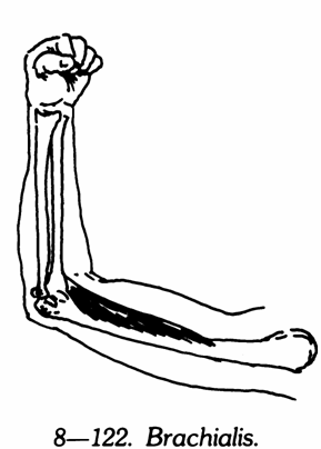 Biceps: biceps (lacertus Hbrosis). Brachialis: