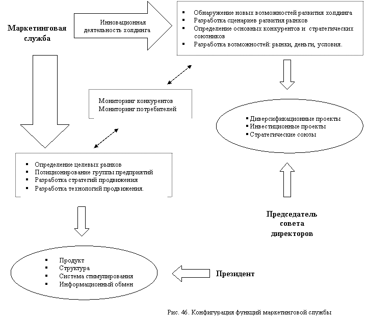 Функции маркетинга, в основном, распределены между структурными подразделениями предприятия. Иногда некоторые из них выполняются недостаточно качественно, но передача их в реорганизованную службу маркетинга может способствовать росту напряженности на предприятии, возникновению l 19319u2019t 2;онфронтации между новой службой и соответствующими подразделениями. В таких случаях может быть применено усиление маркетинговой поддержкой данных функций без перераспределения ответственности за их выполнение. Например, организацией филиалов может управлять сбытовой отдел, но прогноз по объемам сбыта и затратам для нескольких вариантов ему предоставляет маркетинговая служба.