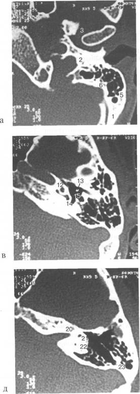 верстий вариабельны, и их величина не играет первостепенной роли в диагностике опухолей яремного гломуса. Кпереди от яремного отверстия располагается округлой формы отверстие канала сонной артерии. Позади яремного отверстия отчетлив 121h711b о прослеживается полосовидное