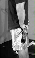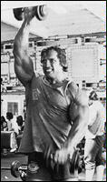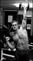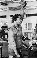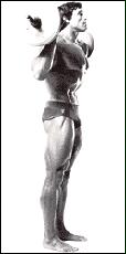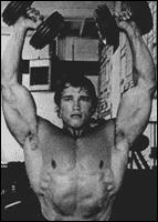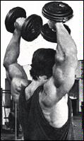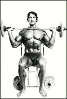 Поднимите гантели к плечам. Разверните ладони "от себя". Поочередно выжимайте гантели вверх над головой. В нижней точке движения старайтесь опускать снаряд как можно ниже. Попробуйте изменить постановку ладоней, расположив гантели параллельно друг другу. Упражнение считается очень эффективным из-за более широкой амплитуды движений, по сравнению с выполнением жимов вверх со штангой.