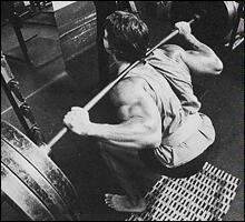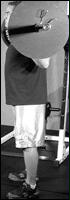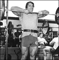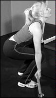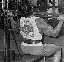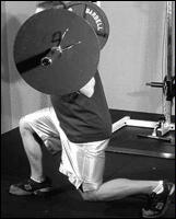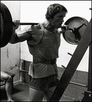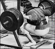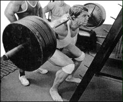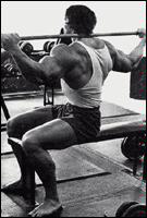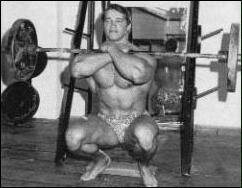 Станьте спиной к штанге, лежащей на стойках. Приподнимите ее плечами, снимите со стоек и сделайте шаг вперед. Удерживая туловище прямым, медленно согните ноги в коленях и опуститесь в положение полного приседа. Из этого положения, не пружиня коленями, медленно поднимитесь в исходное положение. Самое главное в этом упражнении - держать спину прямо. Приседания со "скругленной" спиной могут привести к деформации межпозвоночного диска и зещемлению нерва. Иногда травма бывает настолько серьезной, что требуется хирургическое вмешательство! Для того, чтобы научиться держать спину прямой, можно прибегнуть к такому приему: выберите на стене точку, немного выше своего роста, и смотрите на нее на протяжении всего подхода. Это поможет удерживать спину прямой.