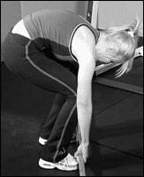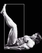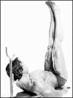 Лягте спиной на пол. Поднимите ноги и упритесь ими в стену или скамью. Руки соедините за головой. Поднимите голову и плечи к коленям, одновременно приподнимая таз. Почувствуйте "стискивание" верхней и нижней части мышц пресса. Медленно вернитесь в исходное положение.