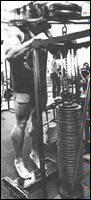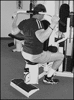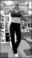 Возьмитесь за рукоятку тренажера, и слегка согните руку в локте. Плавно поднимите руку выше головы, затем таким же плавным движением опустите в исходное положение. Ладонь во время движения должна быть направлена вниз. Если при выполнении движения наклониться немного вперед, то нагрузка "перейдет" и на задний пучок дельтовидной мышцы. Упражнение выполняется поочередно каждой рукой.