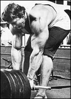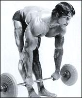 Встаньте перед штангой, лежащей на полу. Поставьте ноги на ширине плеч. Согните ноги в коленях, наклонитесь и захватите штангу хватом сверху на ширине плеч (можно использовать так называемый "разнохват", в котором одна ладонь обхватывает гриф сверху, другая - снизу). Удерживая спину идеально прямой, отведя назад плечи и выпятив грудь вперед, выпрямитесь до вертикального положения.