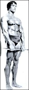 Упражнение выполняется стоя, с помощью EZ-штанги, на тренажерах.
