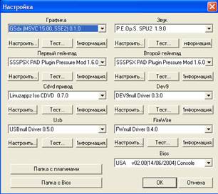 настройки PCSX2, " >Настроить".