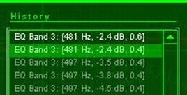 Кроме того, ваши уши быстро привыкают к изменениям EQ. Вы можете повышать больше чем необходимый уровень, чтобы слышать различие. Используйте окно History (щелчок на кнопке History) чтобы возвратиться к параметрам вносимых Вами изменений.