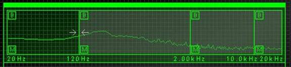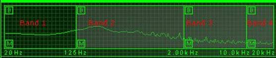 разделен на четыре частотные полосы. Вы можете устанавливать диапазонов произвольно, используя вертикальные линии на спектре модуля.