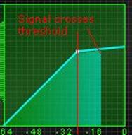 Как Вы узнаете, что сигнал компрессируется? Следите за индикатором под кривой компрессии. На этом рисунке, сигнал не пересек порог и, разумеется, компрессии нет.