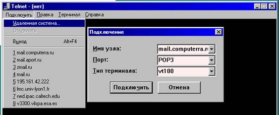 Если используется telnet-клиент из поставки Windows 2000, то подготовительные операции могут выглядеть так: нажатие комбинации клавиш "<Ctrl-]>" переводит клиента в командный режим, где команда "set LOCAL_ECHO" включает локальное эхо-отображение символов; вызов "open имя узла 110