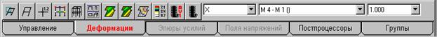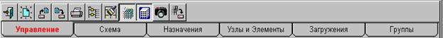 выполняется указанием курсора на "закладки" с наименованием разделов. Функции и режимы инструментальных панелей пре- и постпроцессора описаны в соответствующих разделах.