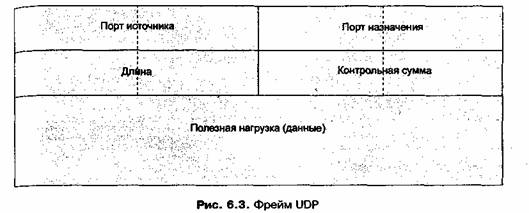 Для передачи данных стек TCP/IP имеет возможность пересылки информации с помощью пото 414e49e ков без установления соединения, при этом к посы IP RFC 1240). Алгоритмы, используемые для форматирования, передачи и обратной сборки фреймов, описываются спецификацией прото 414e49e кол User Datagram Protocol UDP кото 414e49e рый применяется вместо TCP фрейм имеет упрощенный заголовок, за кото 414e49e рым следуют данные (рис 6,3) Прото 414e49e кол UDP используется программами мониторинга сети и некото 414e49e рыми дежности, кото 414e49e рую обеспечивает прото 414e49e кол TCP