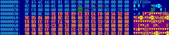 x VirTool Linux Mmap HEX-дампе легко обнаруживается строка "ELF", используемая вирусом для поиска жертв "своего" типа