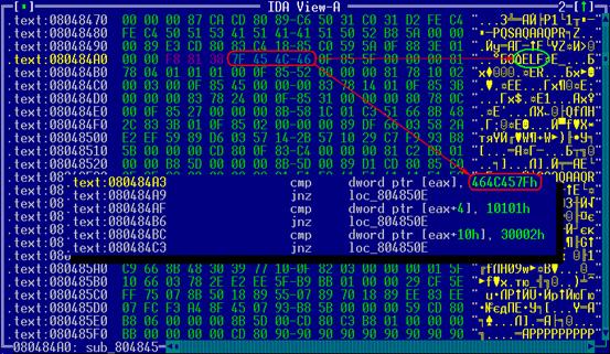 .text:0804847A jnz short loc_804846E ; ELF