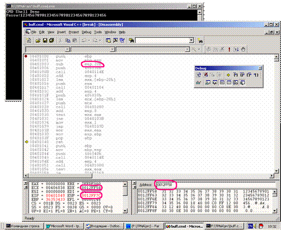 cmd exe" в буфере равно 0x13, следовательно, младший байт регистра EDX x x x B EBP x xFF x