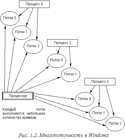 Windows), находящиеся в фазе выполнения. Процессная многозадачность заключается в том, что Windows может выполнять одновременно более одной программы. Таким образом, Windows поддерживает «традиционную» процессную многозадачность, с которой Вы, вероятно, знакомы.