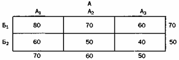 На рис. 3 число в каждой ячейке плана показывает среднюю тестовую оценку для испытуемых при соответствующем эксперим. условии. Напр., у испытуемых, выполняющих сложный тест в состоянии среднего утомления, средняя тестовая оценка равна 50, тогда средняя тестовая оценка испытуемых, выполняющих простой тест в состоянии слабого утомления, равна 80. Числа за границами таблицы (наз. маргиналами из-за своего расположения на краях) представляют собой средние тестовые оценки, вычисленные отдельно по каждому уровню факторов А и Б.