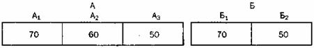 На рис. 5 главные эффекты факторов А и Б совершенно те же, что и на рис. 3, но при этом фактор Б имеет разные эффекты на разных уровнях фактора А. Сложность теста создает разницу всего в 10 пунктов шкалы для группы в состоянии слабого утомления, тогда как для групп в состоянии среднего и сильного утомления она составляет 20 и 30 пунктов соответственно. Можно также увидеть, что уровень утомления создает меньшую разницу в средних оценках по простому тесту, чем по сложному. Наконец, можно заметить, что здесь не выполняется условие полной аддитивности: разность между средними оценками ячеек A1Б1 (75) и А2Б2 (50) не может быть получена сложением разностей между средними оценками A1 и А2 (10) и средними оценками Б1 и Б2 (20). В данном случае мы могли бы говорить о наличии взаимодействия А х Б, или взаимодействия между факторами утомления и сложности теста.