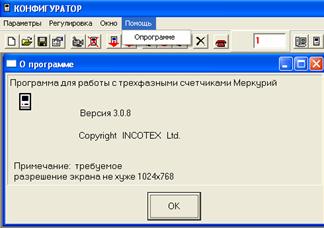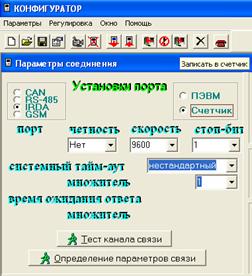 счетчика считывается программой в начале обмена и используется при анализе возможности выполнения тех или иных операций со счетчиком. Если запрашиваемый вид операций для данного типа и варианта исполнения счетчика недоступен - программой выдается соответствующее сообщение для информирования пользователя.