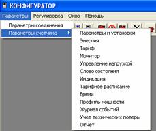 при открытии пункта «Параметры счетчика» появляется группа пунктов меню, необходимых для работы со счетчиком (рис.9).