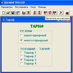 выбрать пункт меню «Тариф». При этом на экране монитора появится окно «Тариф», содержащее, в случае успешного обмена, данные о режиме тарификатора и номер текущего тарифа счетчика. (Рис.13)