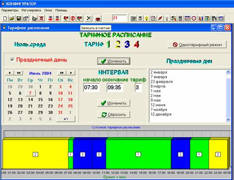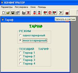 запрограммировать счётчик с помощью кнопки «Записать в счётчик». При этом в счетчик будут посланы запросы на запись только тех параметров, которые изменялись;