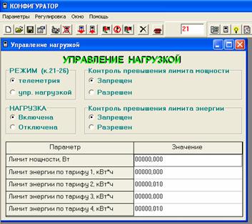 Данная функция предоставляет возможность считывать/устанавливать параметры управления нагрузкой и управлять внешними устройствами подключения/отключения нагрузки.