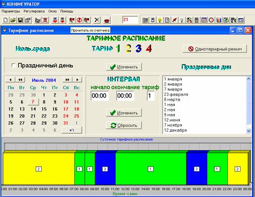 Для считывания тарифного расписания и расписания праздничных дней необходимо: