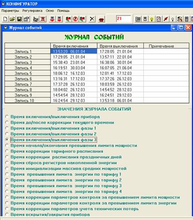 нажать кнопку «Прочитать из счетчика». В случае успешного обмена, на экране монитора, в таблице «Значений журнала событий» отобразятся данные счетчика, соответствующие выбранному значению событий. (Рис.33);
