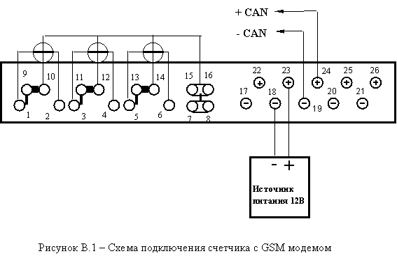 GSM модема необходимо подключить источник питания 12В к счетчику на клеммы питания CAN