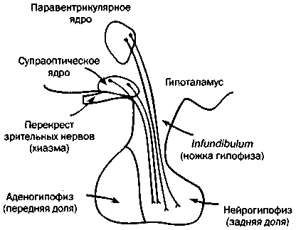 Схема взаимосвязей между нейрогипофизом и гипоталамусом