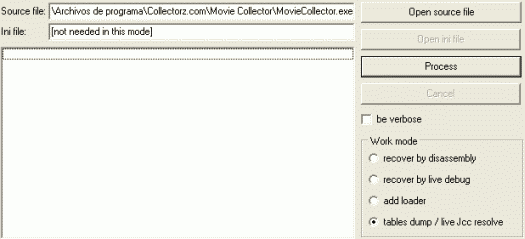 Presionamos Load, indicamos la ruta hacia MovieCollector.exe y el Armadillo goblin se congela sin realizar su tarea =(