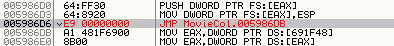 0059AA55 64:8910 MOV DWORD PTR FS:[EAX],EDX