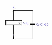 La capacidad equivalente c de una combinación en paralelo se define como la de un solo condensador cuya carga total es igual que la de la figura 2 en su primera parte.