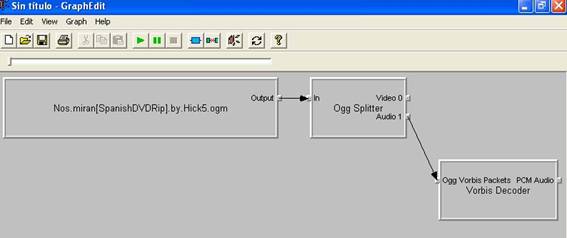 Elimina todas las casillas excepto la de tu archivo, la "Ogg Spliter" y "Vorbis Decoder", para eliminar el resto simplemente pincha con el ratón y pulsa "Supr". Te quedará así: